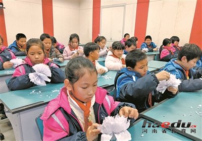 学生们制作白纸花,寄托对张翎飞老师的哀思。